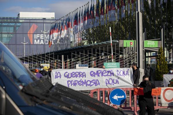 Una veintena de activistas ha protestado frente a la Feria Internacional de Defensa (Feindef) en Ifema en una acción que ha terminado con detenidos.