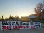 18.40: La Haine entrevista a un miembro de APRAC, uno de los colectivos que organiza las jornadas "Despide el año apoyando a los presos", quien nos comenta: "Valoramos positivamente esta marcha y en general las jornadas, ya que un año más se ha conseguido juntar bastante gente para mostrar solidaridad con lxs presxs, y eso el último día del año, cuando la mayoría de la gente esta en sus casas preparándose para fiestas. Vemos bastante solidaridad en este acto que pone fin a las jornadas, y creemos importante que esto se desarrolle en nuestro barrio, donde tenemos varias instalaciones represivas y carcelarias. La afluencia de gente es la que se esperaba, en actitud solidaria y bastante cañera, hemos conseguido acceder a la entrada de la comisaría y del centro de internamiento de extranjeros, y hemos visto también solidaridad de la gente del barrio".