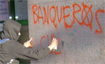 25 encapuchadxs arrasan en el encuentro "Universidad y mercado" en Madrid
