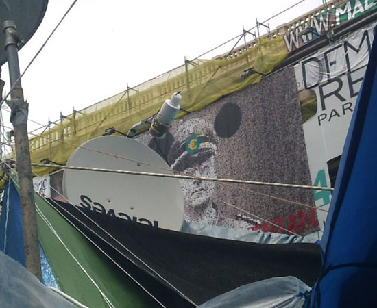 A pesar de disponer de una antena parabólica con WIFI, que desparareció el 30M sin que nadie me explicara quién la había puesto y quitado, los portavoces de Comunicación seguían diciendo que tenían INTERNET, "gracias a los enganches cedidos por los vecinos" ¿?¿? A mi pregunta de quién había colocado la antena parabólica, no supieron contestarme, y me dijeron que “de vez en cuando vienen unos informáticos y lo colocan todo, luego se van”.