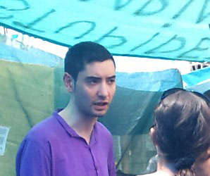 El jueves 26 por la noche me pasé por Comunicación, sólo chicos jóvenes, pero al mando, un chico rubio que se notaba había dejado chaqueta y corbata en su Audi. Esta acampada es estupenda: un ejecutivo a las 10 de la noche, muy comprometido con la causa de cambiar el mundo y coordinando el departamento de Comunicación en una acampada espontánea anti-sistema.