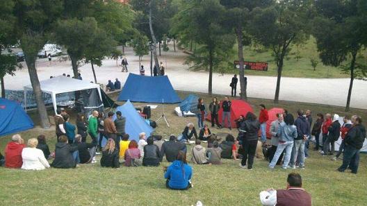 (Vallekas, Madrid) Las compañeras y compañeros de la Asamblea de parad@s y precari@s de Fontarrón (Barrio de Vallekas), han acampado en el parque popularmente conocido como "de las Tetas" (calle Pérez de Ayala 46, metro Buenos Aires)