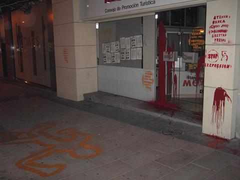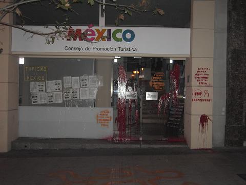 Este establecimiento ha sido saboteado por ser representante de los intereses empresariales y políticos de México. La situación del pueblo mexicano es crítica y extrema. La clase política y empresarial ahoga a los campesinos indígenas de San Salvador de Atenco y Oaxaca, no respeta sus tierras comunales, sus tradiciones colectivistas que chocan frontalmente contra los principios del neoliberalismo y la lógica de mercado que imponen las multinacionales. Por eso, estos hombres y mujeres, son asesinados, torturados y encarcelados. Por eso y porque resisten de manera organizada contra la brutal represión a las que le someten.