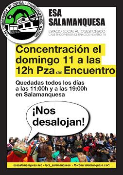 En los pasados días, se ha recibido una notificación por parte de la policía informando del desalojo inminente del Espacio Social Autogestionado (ESA) Salamanquesa.