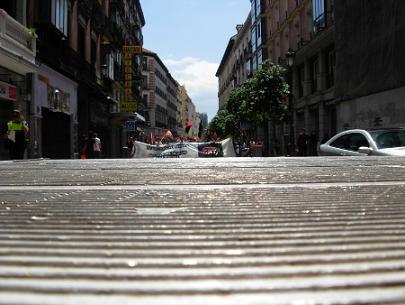 Así, puntuales y con compañeros/as venidos desde Valencia, Granada, Córdoba, Salamanca, etc. la manifestación se inició a las 12 horas subiendo por la calle Atocha. Lo que en principio se preveía una manifestación pasada por agua, se convirtió por momentos en una tórrida y combativa marcha en la que se escucharon proclamas como “obrero si no luchas, nadie te escucha”, “unión, acción, autogestión”, “obrero despierta, el paro está en tu puerta” además de otras que criticaban la reforma laboral.