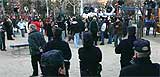 20.10: Miembros de la Coordinadora Antifascista de Madrid han relatado a La Haine los hechos que sucedieron a la desconvocatoria del acto junto al Centro Joven. La policía, aprovechando el momento en que, por haberse desconvocado el acto, se habían alejado los medios burgueses, atacó sorpresivamente a uno de los miembros de la Asamblea de Alcorcón, produciéndole heridas que motivaron su hospitalización. Al parecer, fue una clara provocación.