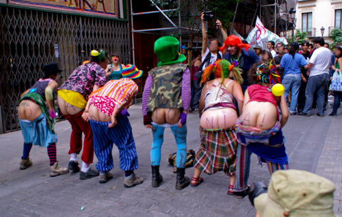 5 acciones se llevaron a cabo durante la manifestación. Con caretas de Gabilondo (el nuevo ministro de Educación y antiguo rector de la UAM) un grupo de estudiantes fueron señalando culpables, apoyados por una armada de payasas.