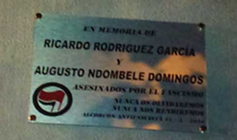 El Viernes 21 de Mayo, fue colocada una placa en el Centro Joven de Alcorcon en memoria de Ricardo Rodriguez Garcia y Augusto Ndombele Domingos, asesinados por fascistas en la ciudad de Alcorcon, el 21 de Mayo de 1995 y el 20 de Julio del 2002,
