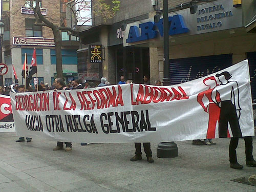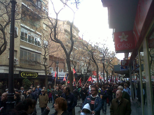 Además de las reivindicaciones sociales y laborales, en defensa de lo público, por una auténtica huelga general, por la organización de los sectores populares y de rechazo a las medidas adoptadas a lo largo de estos años, destacar también la denuncia, a través de pancartas, panfletos y lemas, de dos agresiones proyectadas en concreto contra el pueblo de Alcorcón, pero que ejemplifican el proyecto neoliberal y de cambio de modelo que se está tratando de implantar en el conjunto de Madrid y de Castilla, como son: