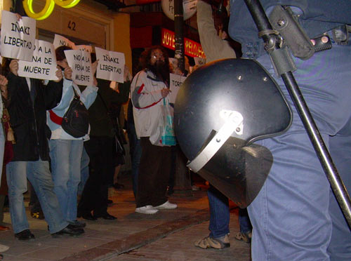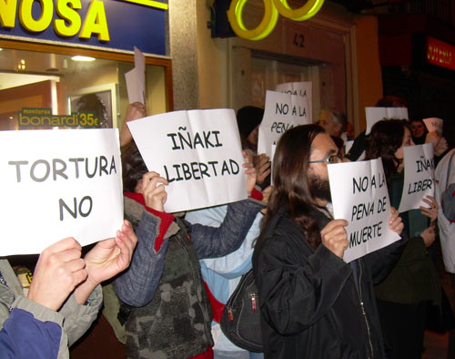 La Haine entrevistó al portavoz de prensa del grupo de ciudadanos que convocan esta concentración. Nos comenta que "tras constatar la confluencia de un aparto judicial franquista no depurado y unas leyes excepcionales y represivas, un estado de venganza, unos ciudadanos se concentran para defender todos los derechos para todas las personas, denunciar la construcción de imputaciones, la utilización de la amenaza terrorista como retroceso del proceso democrático. Esto tiene mucho que ver con Iñaki de Juana, pero mucho más que ver con una estrategia global del Estado. Esta concentración que estamos haciendo no está nada mal, esta viniendo bastante gente de izquierda que, tal y como está el patio, con el miedo que hay en Madrid, se puede considerar más que aceptable. Todavía no se sabe lo que ha decidido el tribunal supremo, pero sería muy complicado pensar que va a haber una marcha atrás. El tribunal supremo es uno de los órganos que mejor se han reproducido desde la dictadura, para el que la transición fue un pacto de impunidad, y es muy complicado pensar que va a rectificar. A pesar de que la situación es muy negativa, de que soplan vientos reaccionarios, los que hemos venido, por encima de como se pronuncie el tribunal, sentimos la necesidad de expresarnos. Dejar claro que sólo con la anulación de procesos judiciales, con la solución a la situación de los presos, con la finalización de la represión y con el reconocimiento del derecho de autodeterminación de los pueblos, habra una solución al problema del Estado. Así se podrían poner los cimientos de un estado nuevo, con derechos civiles y politicos para todos. Dejar claro también que esto no es una lucha estrictamente vasca, si no que tiene mucho que ver con la lucha por la tercera República y con la democratización del estado".