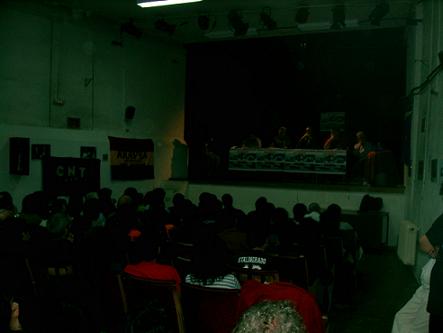 La segunda persona encargada de hablar, una mujer militante del sindicato anarquista CNT, recordó el importante movimiento obrero y social que existía en los últimos años del franquismo y en la "transición" , movimiento que se caracterizó por poseer una gran conciencia de clase. Habló de como la presión social, ejercida principalmente por la clase trabajadora, propicio que el capitalismo se tuviera que adaptar a una democracia burguesa para pervivir en el tiempo. Señaló como, nuevamente, los sectores comunistas y socialistas se ponían al lado del estado y el capitalismo, concretamente apuntó como los comunistas se apropiaron de las Comisiones Obreras, convirtiéndolo, con el tiempo, en un sindicato prácticamente vertical. Recordó a su compañero Agustín Rueda, asesinado por las brutales palizas que los carceleros le propiciaron en aquella época, también se mencionó a otros anarquistas asesinados como Granados y Delgado y Puig Antich. Comentó como los torturadores miembros de los cuerpos represivos, en la transición y posteriormente, continúan en sus cargos, sin existir renovación alguna tanto en dichos puestos como en otros muchos en las direcciones de las diferentes administraciones del Estado. También menciono a la COPEL, una de las organizaciones de Presos en lucha, que con mas rabia denunció, en aquella época, las injusticias del sistema capitalista y carcelario. Afirmó que el sentido de los partidos políticos era "baliar al son del capital" y habló de la injusticia que suponen las cárceles en la actualidad , reivindicando a todos los presos como "sociales" - no comunes- victima de un brutal sistema opresivo y desigual.