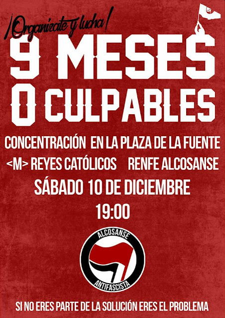 Para pedir justicia sobre esta agresión, así como para denunciar la pasividad (cuando no connivencia) de las instituciones y la justicia sobre este caso, desde AlcoSanse Antifascista convocan una nueva manifestación el 10 de diciembre a las 19:00h en la plaza de la fuente de San Sebastián con el lema "9 meses, 0 culpables".