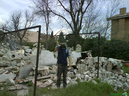 El 13 de abril por la mañana cando todavía los okupantes no se encontraban dentro, una excavadora a órdenes, suponemos que del dueño, ha hecho escombros la casa, situada en Ciempozuelos.