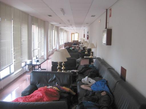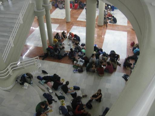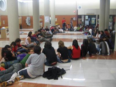 A las 22:00 da comienzo una comida popular entre todos los estudiantes. Al rato un trabajador de la facultad nos informa de que vendrá el Gerente de la Universidad, que finalmente llega acompañado por el Rector para anunciar lo evidente: La ocupación es un rotundo éxito y no tienen más remedio que tolerar nuestra presencia.