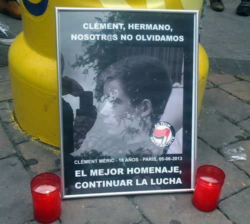 La Haine entrevistó al portavoz de prensa de la Coordinadora Antifascista de Madrid, quien declaró que "estamos aquí en primer lugar para mostrar solidaridad y apoyo al joven antifascista Clement, un joven que fue asesinado el pasado miércoles por sus ideas libertarias y antifascistas por un grupo de neonazis. Y en segundo lugar estamos aquí lógicamente para hacer un llamamiento a organizarse contra el fascismo en cualquier parte del mundo, en principio nosotros desde Madrid, pero también desde el principio internacionalista que llevamos en el ADN en todas partes del mundo organizarnos en esa lucha contra los fascistas. De hecho vemos como uno de los asesinos del joven Clement era de nacionalidad española, en ese sentido es tarea de todos y todas, jóvenes y mayores, en Madrid o en París o en cualquier parte del mundo, combatir a esta sarta de parásitos que no hacen más que apuntalar las ideas reaccionarias del Estado burgués".