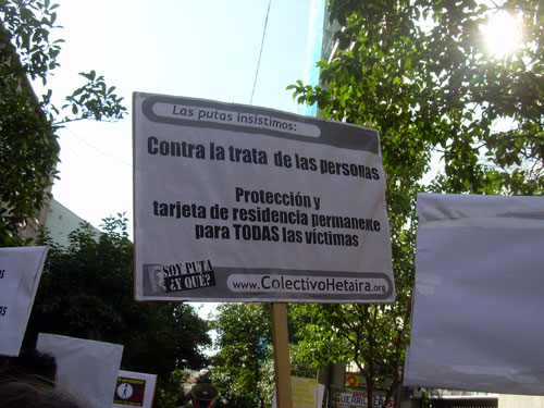 * Estamos hartas de que se diga que todas somos víctimas de trata y se nos niegue nuestra capacidad de decisión para ejercer esta actividad que, aunque la desarrollamos en condiciones cada vez más penosas, es la actividad que hemos decidido escoger para trabajar.