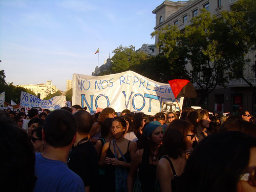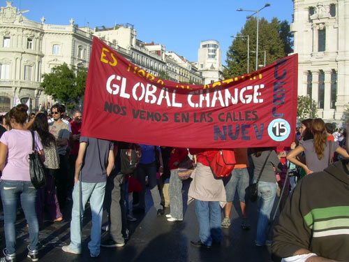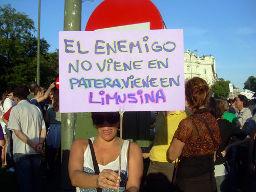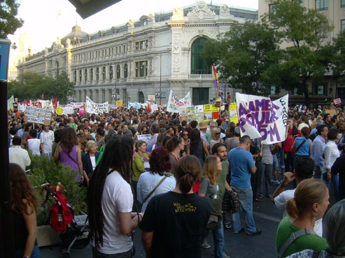 Miles de personas participaron entre Cibeles y Sol en la movilización impulsada por Democracia Real Ya y a la que se adhirieron multitud de colectivos y organizaciones.