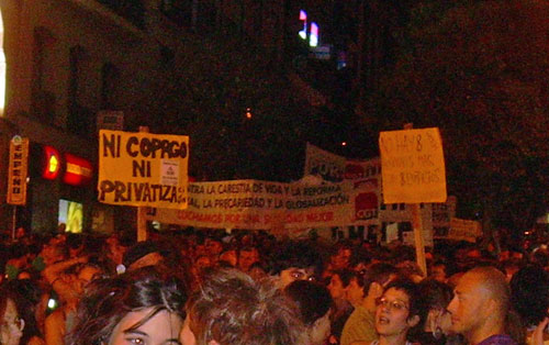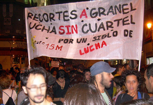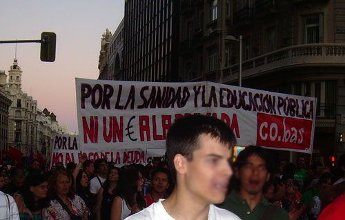 Miles de personas se manifestaron ayer a favor del los servicios públicos. La manifestación, convocada por cerca de 40 organizaciones [ver manifiesto y convocantes], partió de Cibeles a las 19h bajo el lema "Banqueros y políticos: 'Sacad vuestras manos de los Servicios Públicos'" y terminó en la Puerta del Sol abarrotándola de gente. Posteriormente el movimiento 15M celebró su Asamblea General.