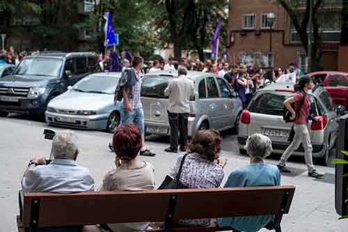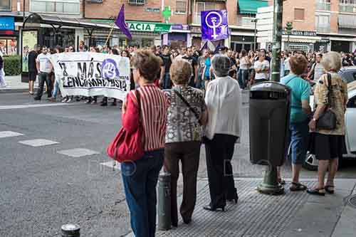 Tal como viene realizando cada día 25 de mes, el colectivo Distrito 14 ha capitaneado esta tarde una nueva acción para "visibilizar la violencia machista" y "extender la lucha antipatriarcal por todo Moratalaz", tal como indican desde el mismo, con el fin de que no sea asumida como una cotidianeidad que relegue a la mujer a un papel de víctima. En esta ocasión era una manifestación lo que convocaban, que bajo el lema "No más violencia machista" ha recorrido la calle de los Vinateros y la avenida de Moratalaz para finalizar en la plaza del Encuentro.