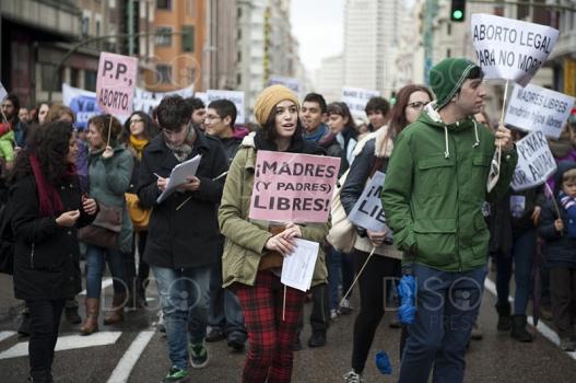 Decenas de miles de personas han marchado hoy desde la glorieta de San Bernardo hasta la plaza de Callao para expresar su absoluto rechazo al anteproyecto de Ley Orgánica de Protección de los Derechos del Concebido y de la Mujer Embarazada actualmente en trámite parlamentario.