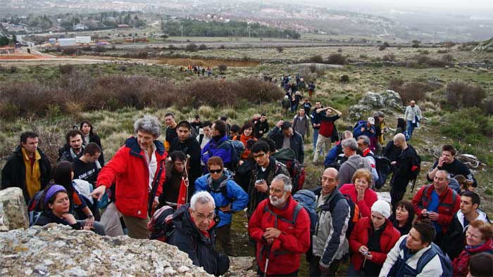 Bajo la amenaza de lluvia, que no se cumplió, y en una interesante mezcla generacional, recorrimos las diez casamatas republicanas de la segunda línea del frente y, tras finalizar la marcha y comer al aire libre, un grupo de unas cuarenta personas subieron hasta la roca en la que están grabadas las siglas de la CNT y de las JSU.