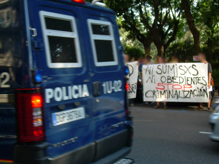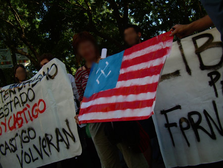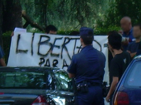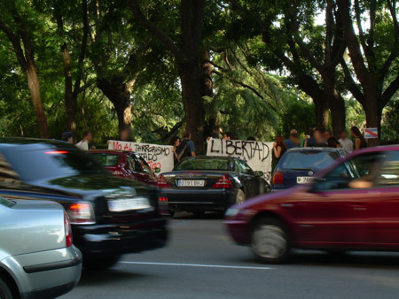 Concentracion realizada en Madrid el 26 de junio, por la libertad de Fernando Masseilot, preso político en la era del gobierno "progre" uruguayo. Condenado por sedición, lo que significa de 2 a 6 años de carcel por romper un cristal del mc'donald (10 de marzo del 2007)