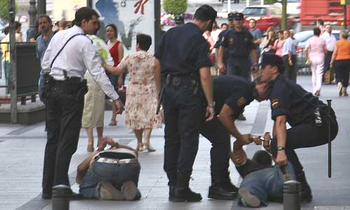 Tercer día. Mismas cargas. Mismas detenciones :: Mil personas concentradas en Madrid para exigir el derecho a una vivienda digna. Presencia policial amenazante, y desobediencia más viva que nunca. Los pobres no podemos hacer actos pacíficos. Las carreras provocadas por los violentos defensores del orden establecido se han repetido, una vez más, en el corazón de Madrid