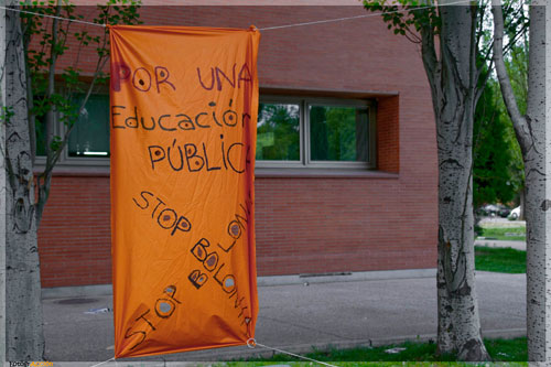 Encierro realizado bajo el lema: Contra la mercantilización de la educación. Ni fábrica de parados, ni escuelas de élites. No al Plan Bolonia.
