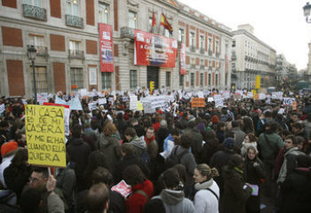 19.50: Un testigo asegura a La Haine que la policía "ha realizado una carga junto al Congreso de los Diputados, tirando algunas pelotas de goma". Acto seguido, los manifestantes han intentado cortar el tráfico en Gran Vía pero la policía antidisturbios, acompañados de numerosos furgones, se lo ha impedido. Un testigo asegura a La Haine que la policía volvió a cargar en esta zona, produciéndose al menos un herido. En este momento la marcha se encuentra en preciados (junto al Corte Inglés), calle comercial que en estas fechas navideñas está a rebosar de gente consumiendo frenéticamente. Algunos curiosos acaban uniéndose a la protesta, en la que todavía participan proximadamente 2000 personas, según declaran a La Haine varios manifestantes.