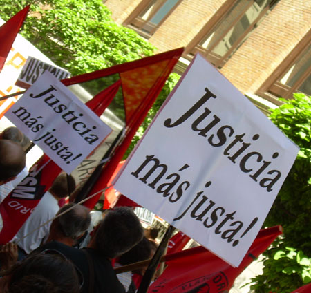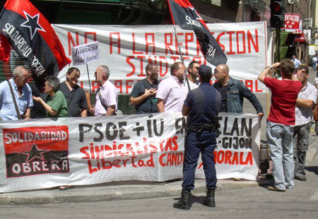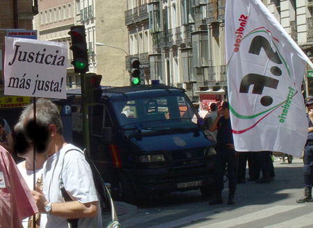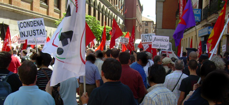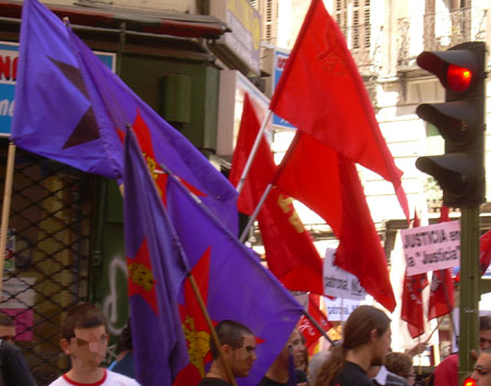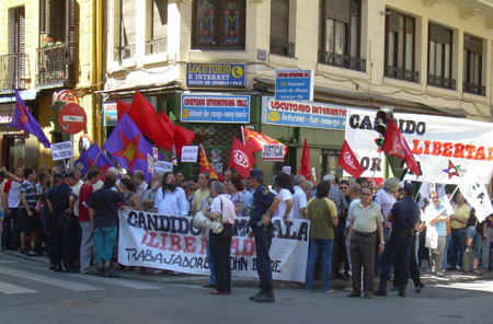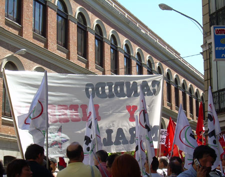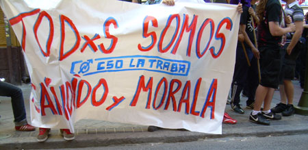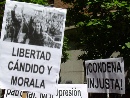 Una concentración unitaria convocada por diversos sindicatos y organizaciones políticas y sociales, reunió este mediodía a unas 150 personas junto al Ministerio de Justicia. Se corearon cánticos por la libertad de Cándido y Morala, y contra la burocracia sindical. [ver también cobertura en Glayiu]