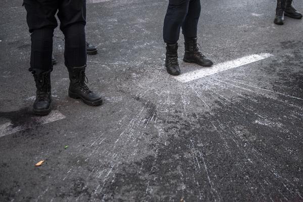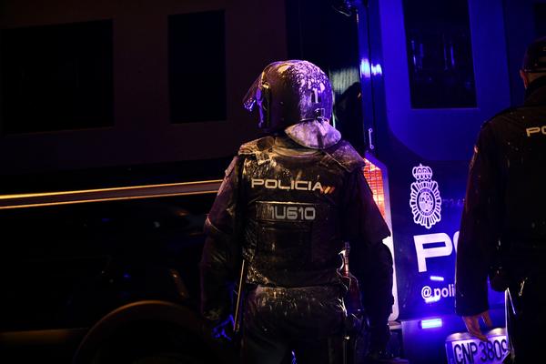 A primera hora de la mañana, los manifestantes presentes han lanzado harina y pintura ante la barrera policial, que ha cargado y detenido al menos a una persona. Cánticos contra los desahucios, carteles en los que se podía leer “Fuera la policía de nuestros barrios”, y una versión de I can't get enough del grupo Depeche Mode reconvertida en “Un desahucio se defiende hasta el final” han acompañado la mañana de resistencia.