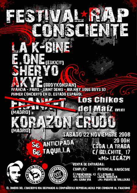El rapero se apea sin avisar del Festival ?Rap Consciente?, previsto para el 22 de noviembre en el CSO La Traba. Los Chikos del Maíz tocarán en su lugar.