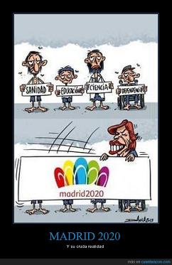 Los gastos realizados hasta ahora en la promoción de la candidatura de Madrid a los juegos olímpicos es simplemente una barbaridad y un insulto a la precarización de la vida de nuestra sociedad. Aunque difícilmente nos enteraremos de los gastos reales que se han enterrado en la promoción de “una olimpiada para Madrid”, algunos cálculos sitúan esta cifra en 8.000 millones de euros, incluyendo las infraestructuras específicas, irresponsablemente construidas, antes de los que juegos fueran adjudicados.