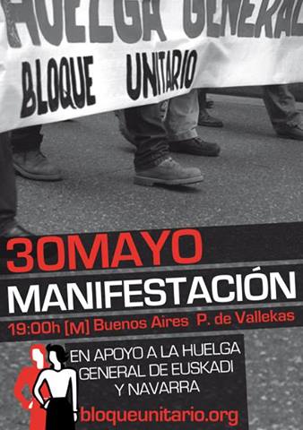 Los sindicatos ELA, LAB, ESK, STEE-EILAS, EHNE, HIRU, CGT-LKN y CNT han convocado y llaman a la Huelga General el día 30 de mayo de 2013, junto con los movimientos sociales, en Euskal Herria.