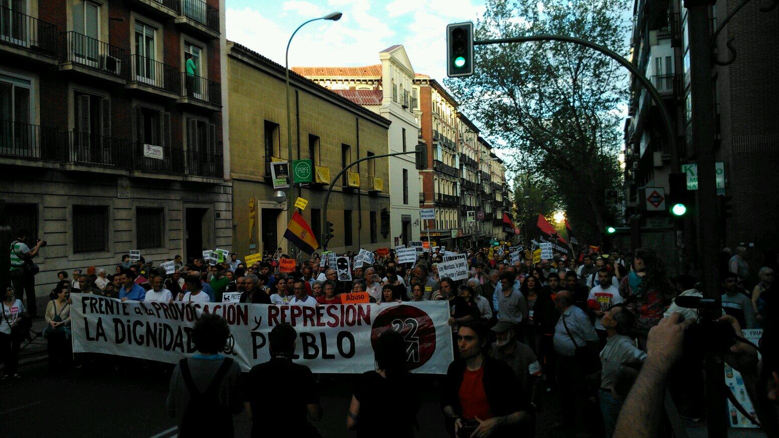 20.10: La marcha avanza hacia Antón Martín, 'escoltada' por los represores. Se producen momentos de tensión con el pseudo-periodista Cake Minuesa, de Telemadrid, quien anda provocando en la manifestación.