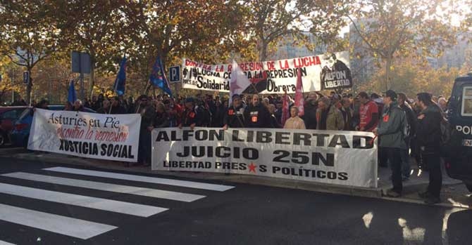 El pasado martes se celebraba en la sección 30 de la Audiencia Provincial de Madrid la vista oral del juicio a Alfonso Fernández Ortega, 'Alfon'. El joven detenido en la mañana de la huelga general del 14 de noviembre de 2012, acusado por la policía de acudir a esta convocatoria "portando explosivos", que se enfrenta a una petición de cinco años y seis meses de cárcel.