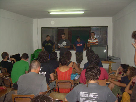 Un grupo de jóvenes antifascistas, vecinos del barrio de Vallekas han okupado un edificio de 3 plantas en la calle Cerro de Garabitas, junto al metro Puente de Vallekas, y ayer sábado por la tarde realizaron un acto de presentación al que acudieron unas 60 personas.